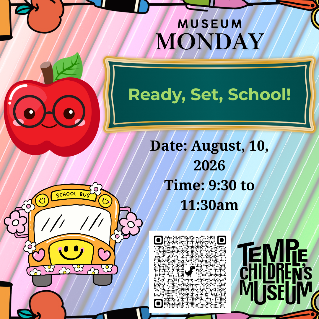 Get ready for a season of learning at August’s Museum Monday! Young learners will jump into hands-on STEAM activities inspired by classic classroom fun—with a creative twist. From experimenting and building to exploring numbers, patterns, and art, children will practice important skills through playful projects that build confidence and spark excitement for the school year ahead.