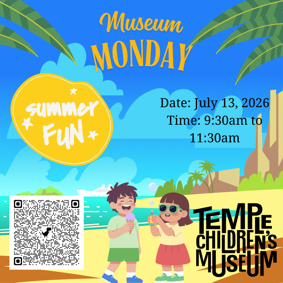 Soak up the sunshine at July’s Museum Monday! Young learners will dive into hands-on STEAM activities inspired by the sights and sounds of summer. From colorful creations to playful science explorations, children will experiment, build, and discover through engaging projects designed to spark curiosity and celebrate the joy of the season.